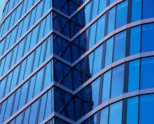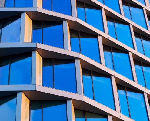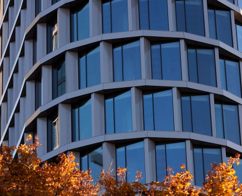 As part of cooperation with Reconal, which prepared the façade, we delivered a total of over 25,000 m2 of glass units. In the construction of two towers, the SunGuard SN 51 HT glass was used – a solar control glass, which is characterised by high selectivity and a low coefficient of total solar energy transmittance. In the construction of the podium, the Planitherm XN II glass was used, i.e., a glass characterised by low emission and energy efficiency.
