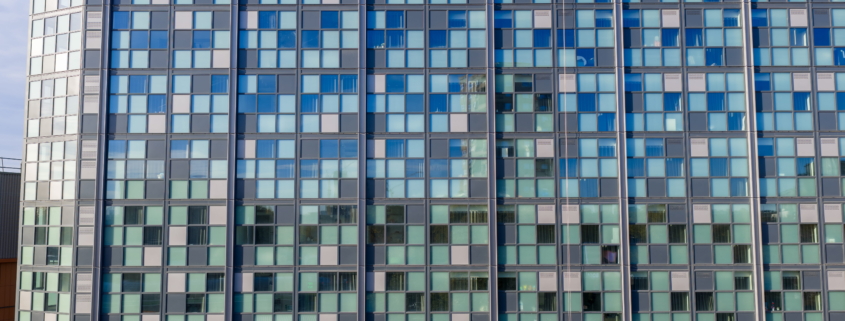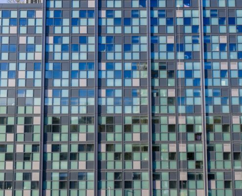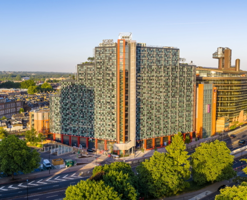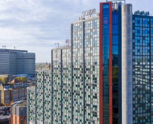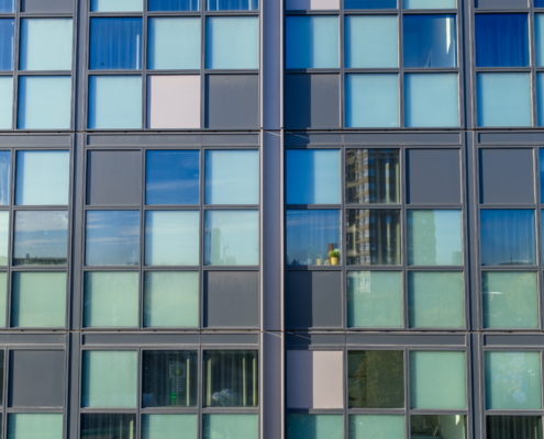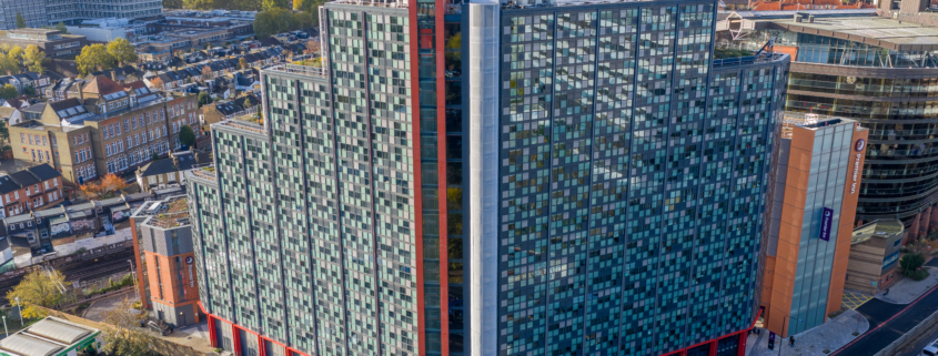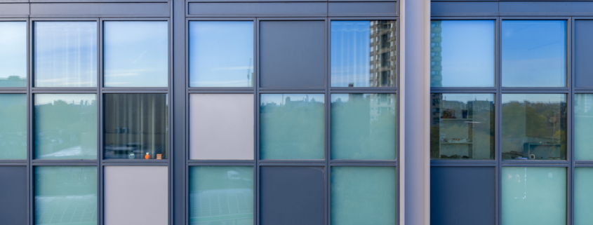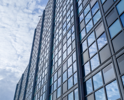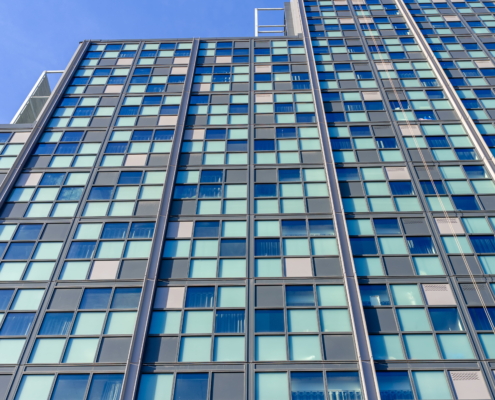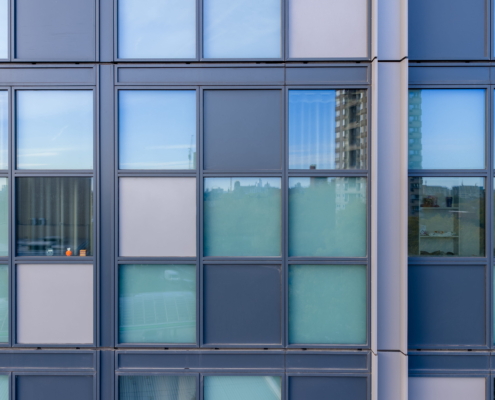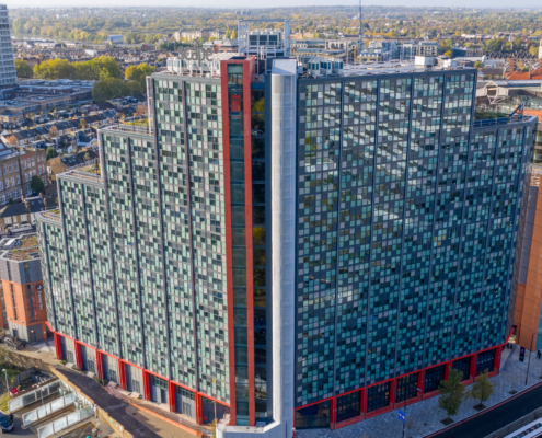 The range of glazing installation works at 181 Talgarth Road included a 17-storey residential building for students. Two main systems were used in the building: a unitised system from the first floor to the roof, and a mullion-transom façade system on the ground floor and mezzanine level. The main type of glass used was COOL-LITE SKN 183II solar control glass, which reduces overheating of rooms, while the toughened version increases the safety of users.