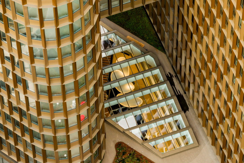 Press Glass supplied the project with advanced double-chamber glazed units with float glass (Extra Clear) and thermofloat glass (Climaguard Premium 2), ensuring very good thermal insulation (Ug = 0.5 W/m²K), acoustic insulation and a high level of light transmission. The double-glazed unit configuration is also characterised by low reflectivity, maintaining a neutral appearance of the façade.