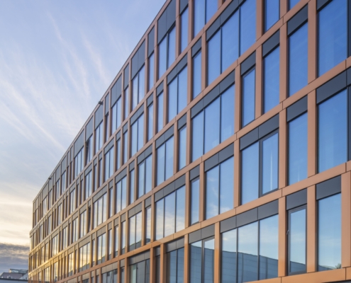 Press Glass carried out the following project together with the Arton company. The facade design was supplied with glazed units based on Silverstar SELEKT 70 T from Euroglas – glass combining high light transmission with effective solar energy control and very good thermal insulation. The glass was toughened to ensure safety and increase the mechanical durability of large glass panes.