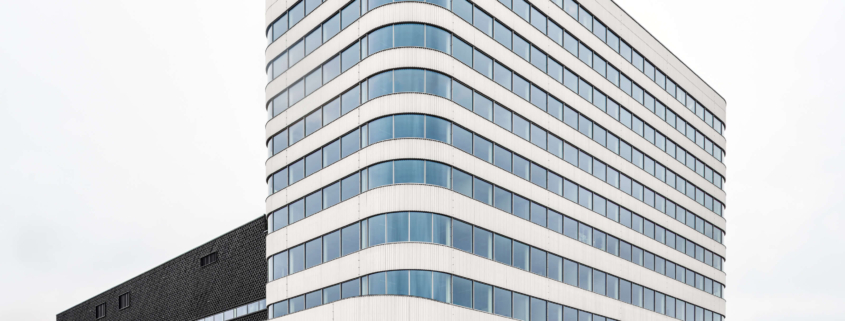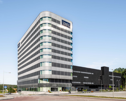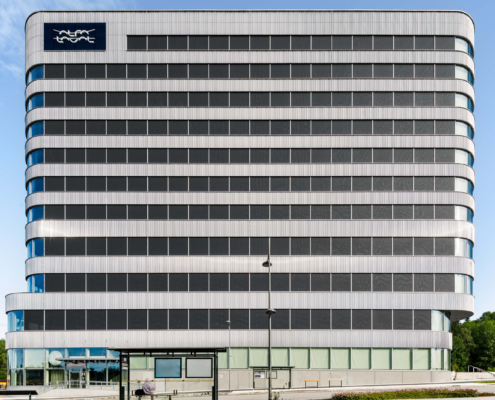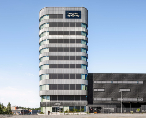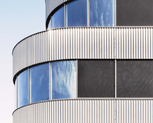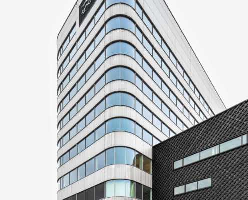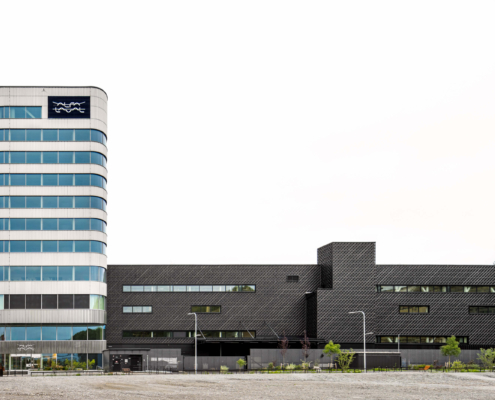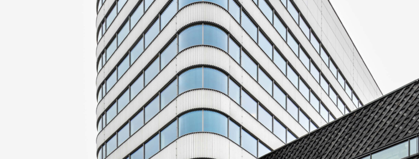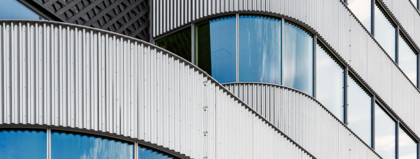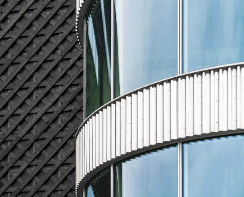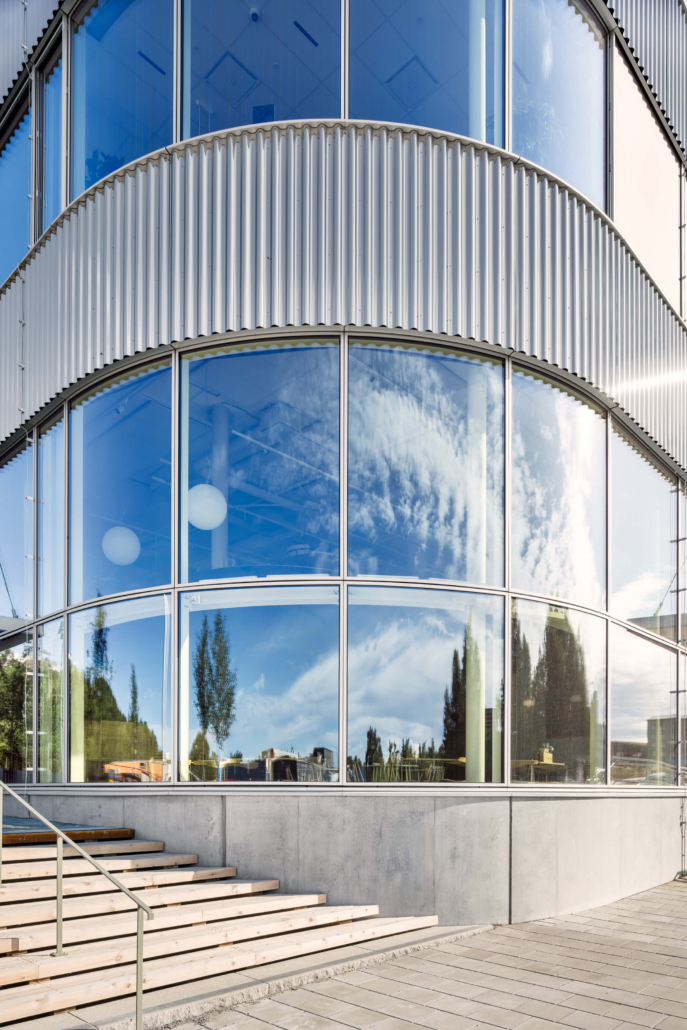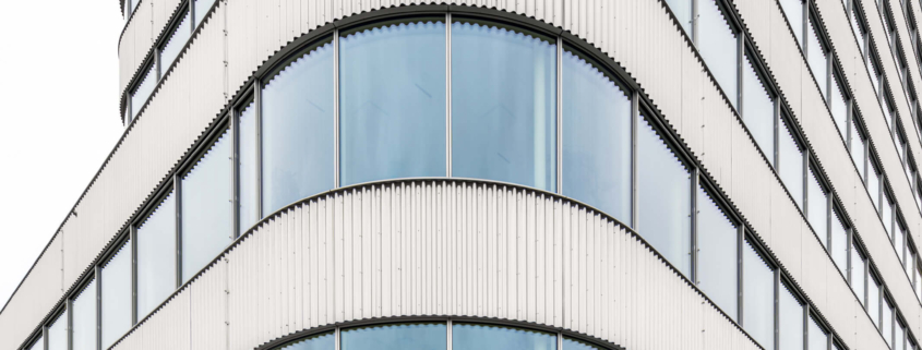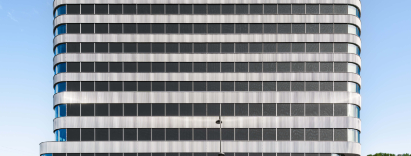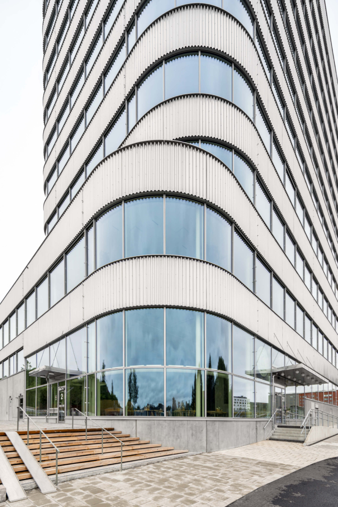The unique façade with stainless steel elements covers approx. 3,500 m² of glass supplied by PRESS GLASS, of which approx. 500 m² of curved glass (cylindrical and 3D), confirming the versatility of this technology in such modern and innovative projects. Most of the glazing has been tested using Heat Soak Test.